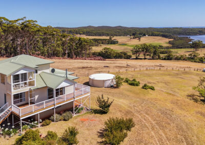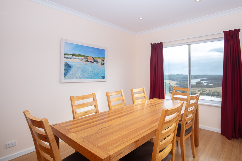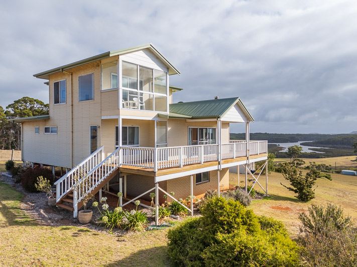 Yes, this magnificent home with its commanding views is offered for sale for the very first time. Watch the waves crash over Saddle Island in the distance, the mist spiral like smoke from the forest, the constant kaleidoscope of light or the long, lazy sunsets. It's all quite surreal. Built in 2009 by the late, great Bernie Malatsky, it was designed to nourish, nurture and reunite family and friends whilst encapsulating the panorama. It's world class. Every day is a celebration here. It's 'as open plan as possible' with wide wrap around verandahs and comprises 4 bedrooms and 2 bathrooms with a library and studio space to compliment the master suite on the upper level. Each bedroom has a view. There's reverse cycle air-conditioning, a slow combustion fire, bamboo floors and a walk-in pantry to remember. Below there's a solid brick double garage. Wander down to the Frankland River below and be calmed by its stillness, its long reflections and better still, explore it to the ocean or upstream to the majestic Monastery's landing. You'll never regret it. The newly installed floating jetties and boat launching facilities are superb. This is your chance to join the privileged few at our beautiful Nornalup.